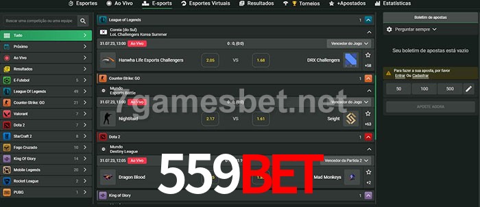 O 559bet oferece uma grande seleção de opções de apostas em e-sports com probabilidades competitivas